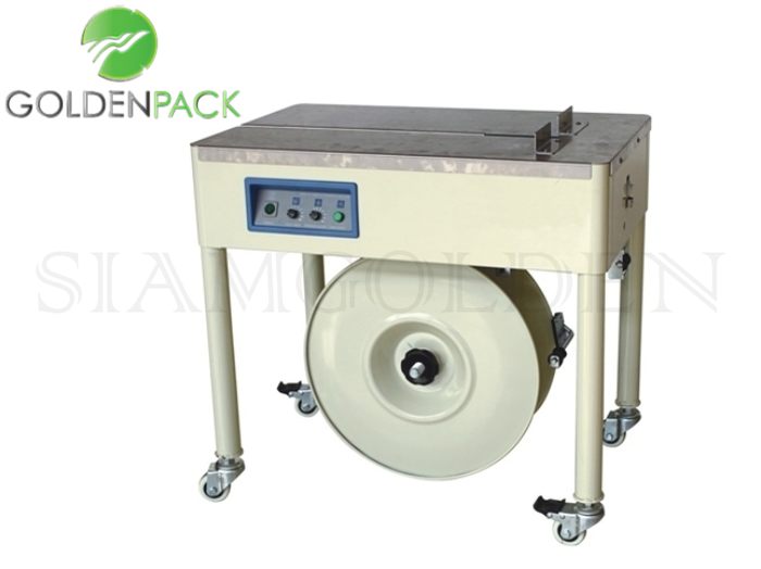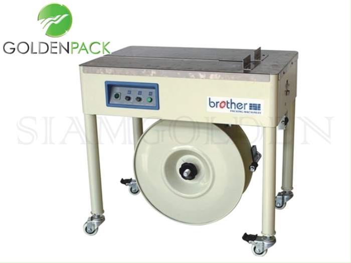 เครื่องรัดกล่องกึ่งอัตโนมัติ ใช้สำหรับแพ็คสินค้า ด้วย สายรัดพลาสติก (PP) เชื่อมติดด้วยความร้อน ตัวเครื่องรัดกล่องแข็งแรงทนทาน มีทั้งระบบไต้หวันและญี่ปุ่น เครื่องแต่ละรุ่นสามารถใช้กับสายรัดหน้ากว้าง 9-15 mm. ความหนา 0.50.0.85 mm. ใช้กับสายรัดทุกเกรด ความเร็วในการแพ็ค 1.5 วินาที/เส้น