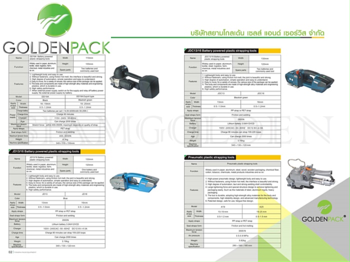 บริษัท สยามโกลเด้น เซลส์ แอนด์ เซอร์วิส จำกัด นำเข้าและจัดจำหน่ายครื่องรัดสายรัดพลาสติก เครื่องรัดสายรัดพลาสติก เครื่องรัดระบบแบตเตอรี่ เครื่องรัดระบบลม เครื่องรัดระบบไฟฟ้า เครื่องรัดระบบมือโยก