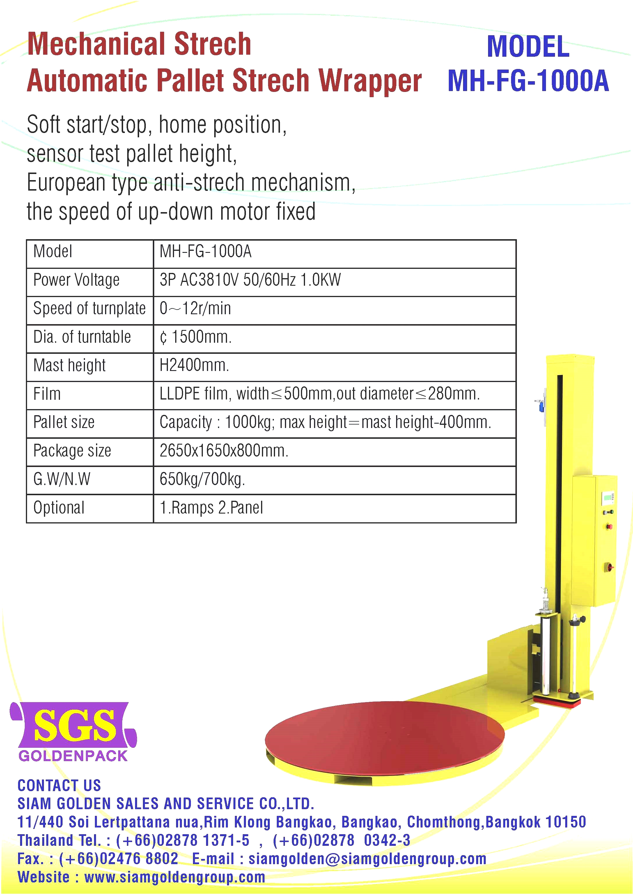 #MH-FG-1000A #จำหน่ายเครื่องพันพาเลท #นำเข้าเครื่องพันพาเลท #เครื่องพันฟิล์มสินค้าบนพาเลท #สยามโกลเด้น